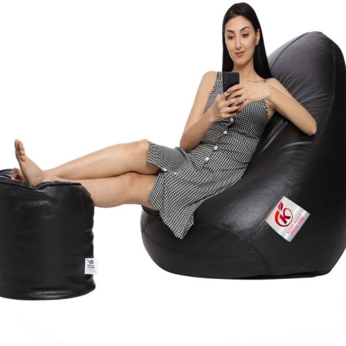 Black Coaster Shine Teardrop Bean Bag Cover with Stool